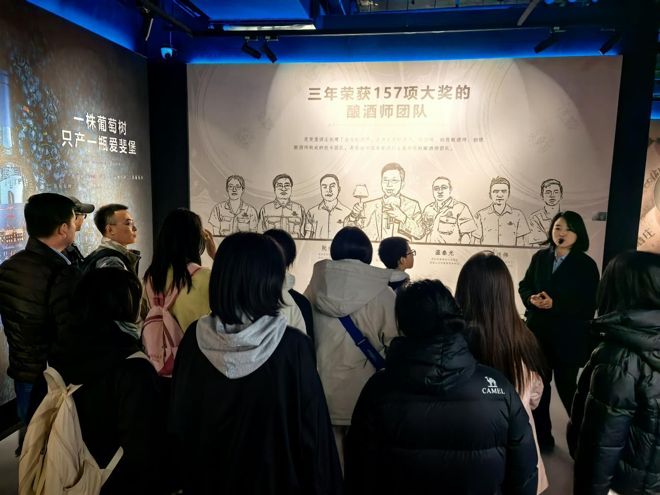 师生们还共同参观了酒庄博物馆“实业兴邦”主题展览,感悟百年传承,领略品牌魅力。讲解员为师生系统介绍张弼士先生1892年创办张裕酿酒公司的历程,生动诠释了民族品牌的工匠精神。大家深入了解橡木桶烘烤工艺、葡萄酒陈年机理,切身感受匠心工艺的独特魅力。