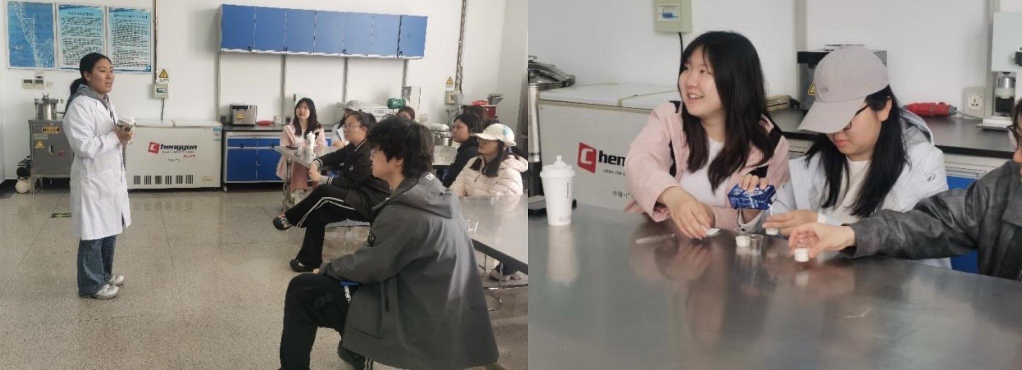 在教学示范中心同步开展“乳制品科学与风味品鉴之旅”特色研学,采用“自学+感官评价+理论教学”模式,聚焦牛奶、酸奶、奶酪等产品,引导学生梳理加工工艺、关联风味原理,将专业知识与饮食文化深度融合,强化动手与思辨能力。